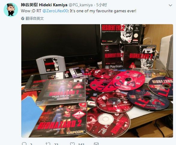 而大光头神谷英树也是回复了他,表示这也是自己最喜爱的游戏之一。