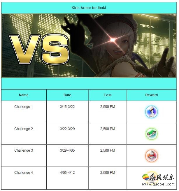 伊吹(麒麟套装)挑战时间表: