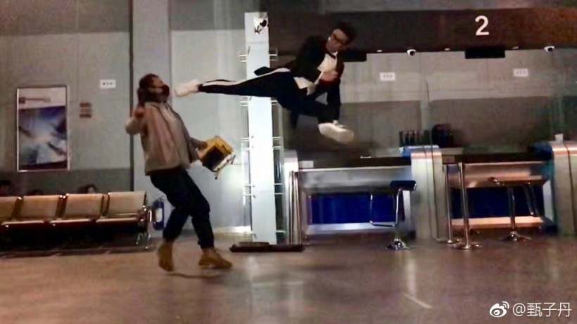 此外,甄子丹还是《肥龙过江》的监制,一人身担两职在片场相当忙碌,一边与剧组人员讨论电影,一边在认真观察现场监视器。而之前晒出的一张腾空飞腿的动作镜头,也让我们能一窥电影中甄子丹的形象。