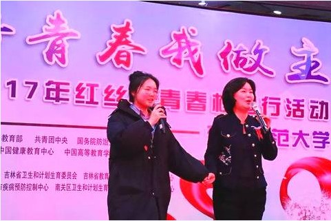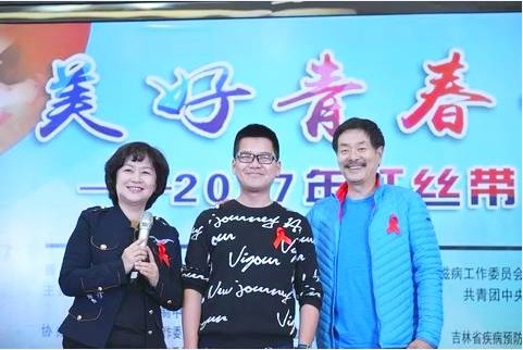 鞠萍和濮存昕合影。