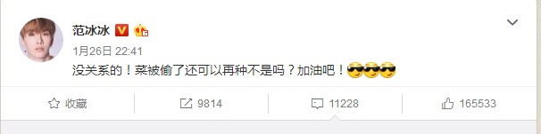 当晚,范冰冰官网搜范冰冰范冰冰发文鼓励弟弟“没关系的!菜被偷了还可以再种不是吗?加油吧!”。面对姐弟看俩人的“偷菜”言论,网友直呼你们还在玩QQ农场吗?!