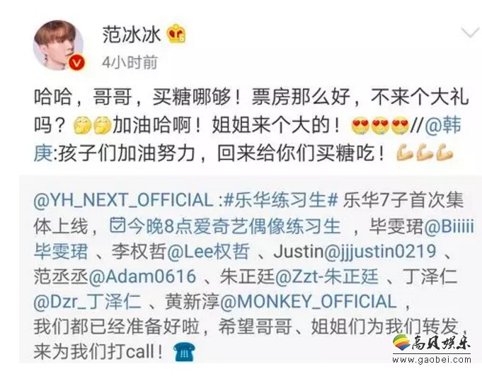 韩庚、范冰冰微博互动