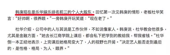更有网友爆料韩庚本人就是乐华的老板之一,更是曝出韩庚所持着大量的股份和娱乐资源,是这出大戏的幕后推手。更有劲爆消息称另外两位股东分别是周笔畅和黄征。