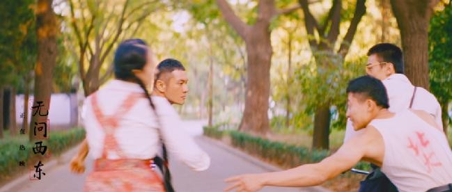 那个方阵中的清华女生在做第五套广播体操。女生们身穿着那个时代的运动服:紫色短裤和白色上衣。因为紫色是清华的校色。至于为什么都是女生组成的方阵,因为“弱水三千,我只取一瓢饮”啊。王敏佳看到:这么多美丽出色的女孩子,但是陈鹏只是拉着我的手在跑。校园的窄巷里,巷头和巷尾的学生骑着自行车对峙,有人手里还抱着一摞板砖。当陈鹏拉着王敏佳从他们身边跑过,原本准备打架的男孩子们觉得稀奇又好玩。有两个调皮的男生干脆扔了板砖,骑车追了上去,还试图抓王敏佳的辫子,而这个学生的背心上写着“北大”的字样。虽然只是一闪而过的镜头,但是这个有趣的梗,揶揄了清华、北大两所高校多年以来的相爱相杀。