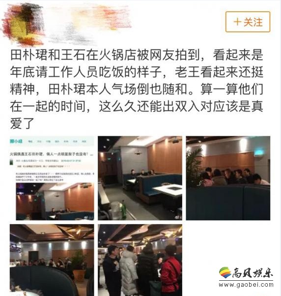 恰巧的是,此前便有网友爆料王石与田朴珺将在2018年底完婚,他们还在米兰买了百万的天价婚床;近日二人也被网友拍到共同现身火锅店,与众好友共享美食;在双方共同出席的某活动上,王石也大方公开表示田朴珺是自己的媳妇,就连手机屏保也是她的照片。联想起这位“王的女人”在《奇葩大会》第二季的演讲,看来二人夫妻关系即将坐实。