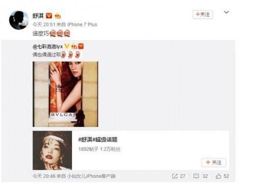 有意思的是,舒淇稍后翻牌转发并调侃道:“这么巧?”,此举动引发一众粉丝羡慕,纷纷去评论区给这位幸运粉丝报喜。