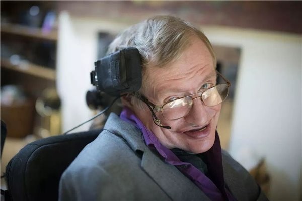 患有肌肉萎缩性侧面硬化病的霍金丧失肢体行动能力,通过红外线侦测他的眨眼动作转化为文字,并通过语音合成器读出相关文字。