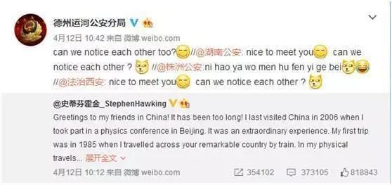 各地公安局微博蹭霍金的热度