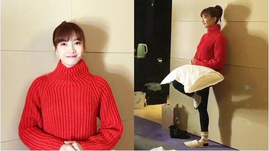 光不够,枕头凑!江疏影工作室发布了一则工作花絮视频,江疏影身着红毛衣出镜,在镜头前与大家热情地打招呼,整个人白到发光。镜头一转,只见江疏影单腿站立,膝上放着枕头用来补光。