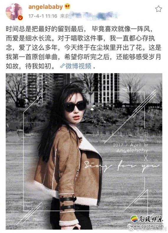 4月1日,Angelababy通过微博称将发行她的第一张新专辑,并且封面已经在拍摄中。照片中,baby扎着高高的马尾,身穿黑色亮片紧身长裙,露出纤细的手臂,好身材显露无疑,十分的性感迷人。