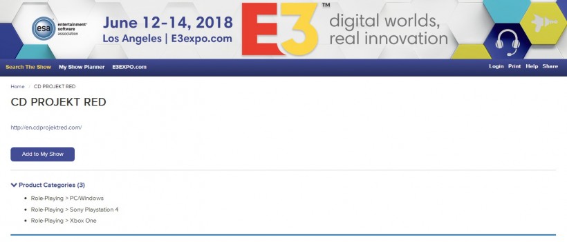 日前,E3的官方日程表上确认CDPR将在展会期间带来一款RPG游戏。