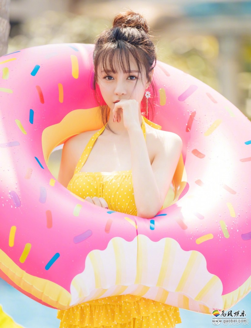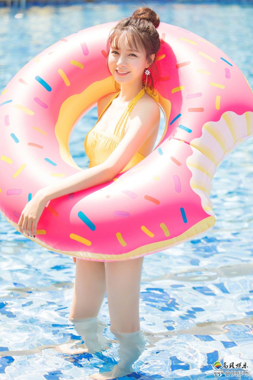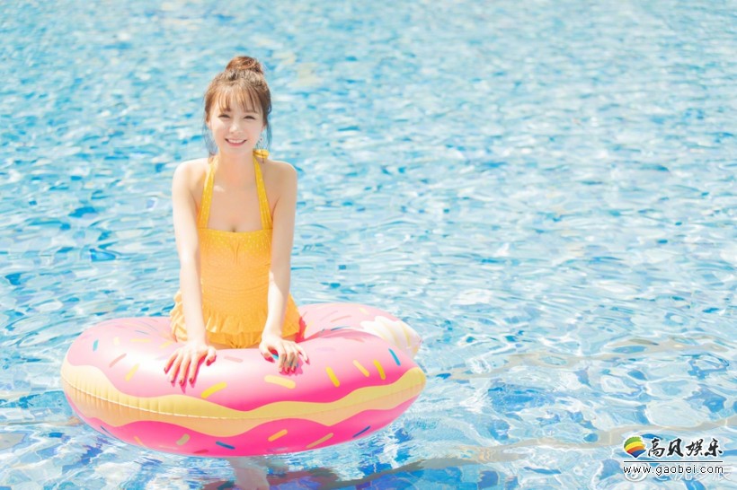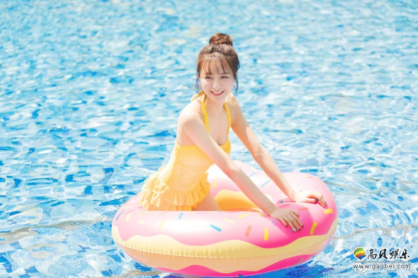 5月1日,沈梦辰微博晒出一组身穿可爱比基尼湿身戏水的美照,照片中,沈梦辰抱着救生圈可爱呆萌,身材火辣,美胸十分抢镜。