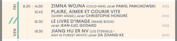 法国当地时间5月2日,第71届戛纳国际电影节官方排片表正式公布,入围主竞赛单元的唯一的一部华语片《江湖儿女》确定将于法国时间5月11日晚上19:30举行全球首映,片长为141分钟。本届戛纳国际电影节将于法国时间5月8日正式开幕。近日,《江湖儿女》剧组已确认导演贾樟柯将携手赵涛、廖凡等主创出席电影节一系列官方宣传活动。
