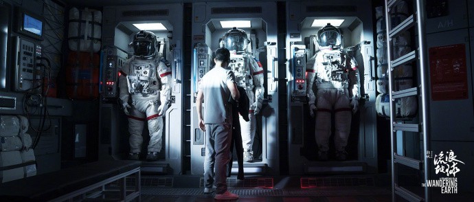 吴京站在航天服前