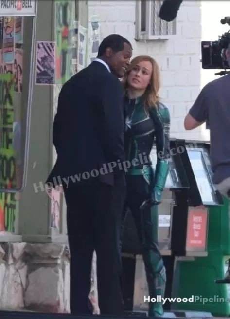 Hollywood Pipeline曝光了漫威《惊奇队长》新片场照,现场不仅有惊奇队长本人,由塞缪尔·杰克逊饰演的年轻时的神盾局长尼克·弗瑞也现身。时隔四年,正义不屈的局长又将重回我们的视线……