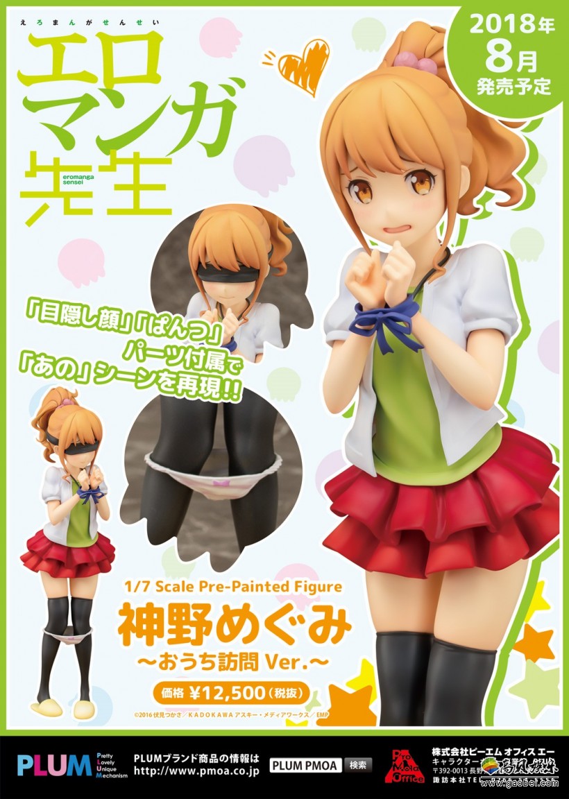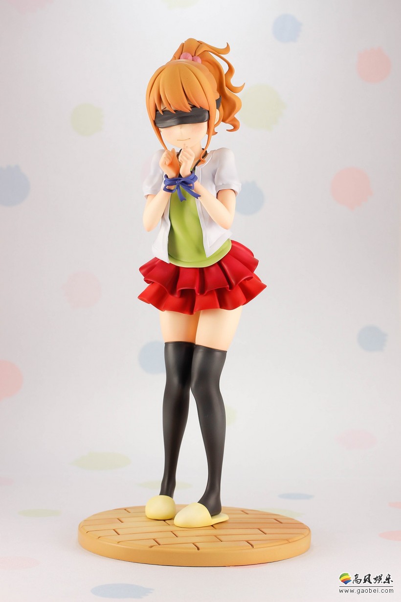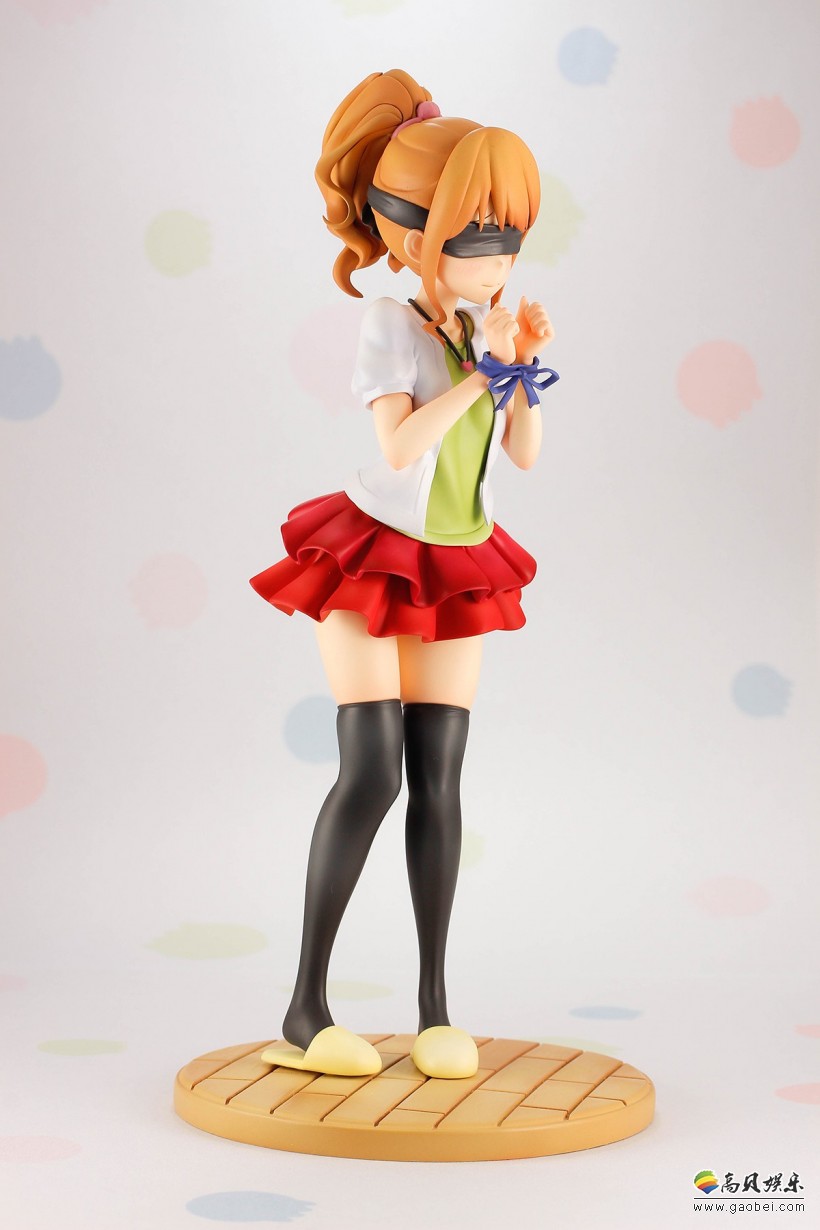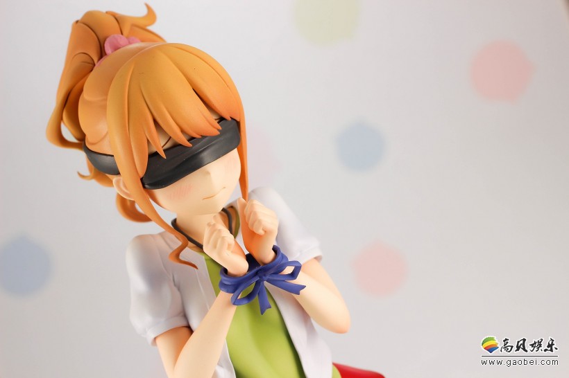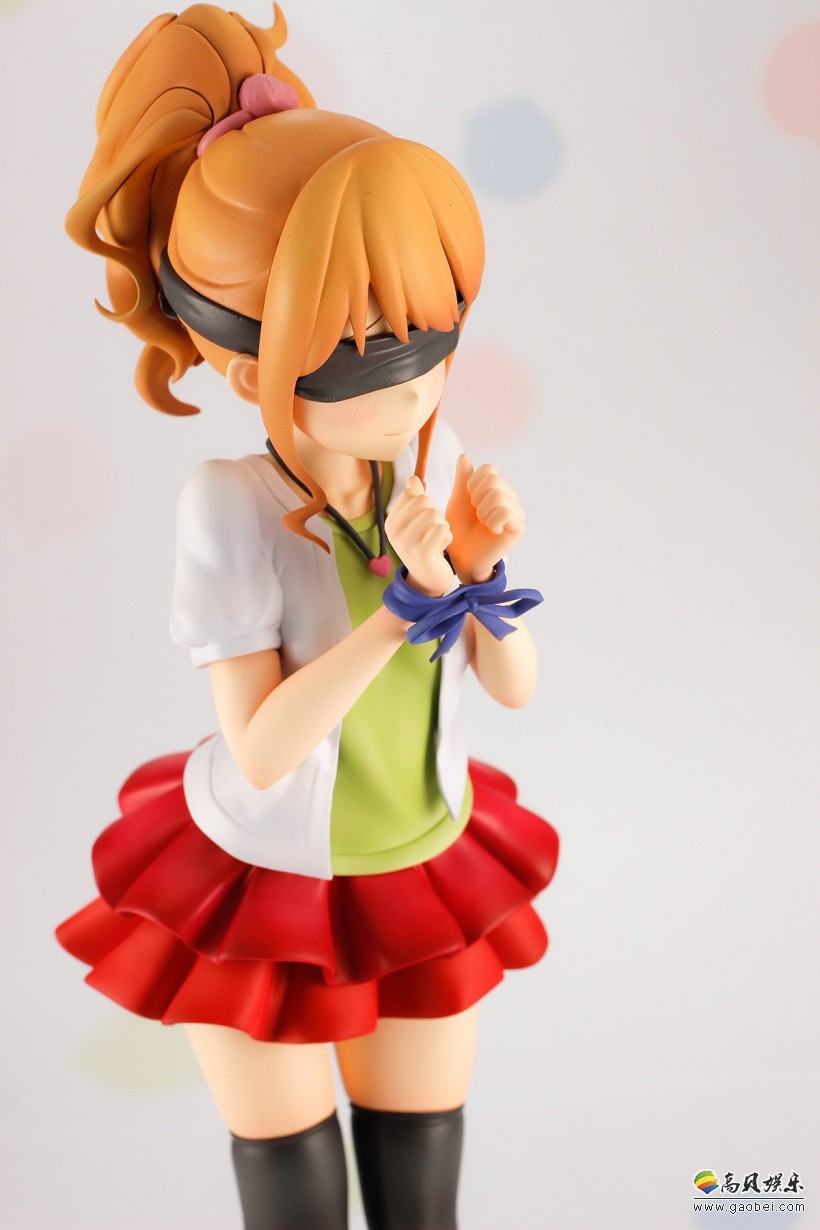 在《埃罗芒阿老师》动画第2话里,班长神野惠为了让纱雾重回学校而拜访和泉家,期间她遭到纱雾各种捉弄取材,不仅双手被捆绑,还戴上眼罩,甚至连胖次都惨遭毒手。基于这个设定,本款手办将小惠经历的种种调戏再次回放,无论是被捆住手腕后表情的局促不安、戴上眼罩配件后的窘迫,还是最终胖次滑落黑丝膝间的场景都让人不由心跳加速,浮想联翩。