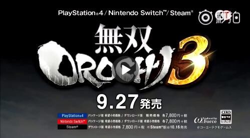 《无双大蛇3》发布了新的预告片,确认游戏将于9月27日发售,登陆PS4和Switch,PC(Steam)版10月16日发售。