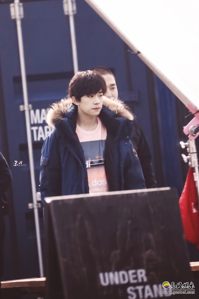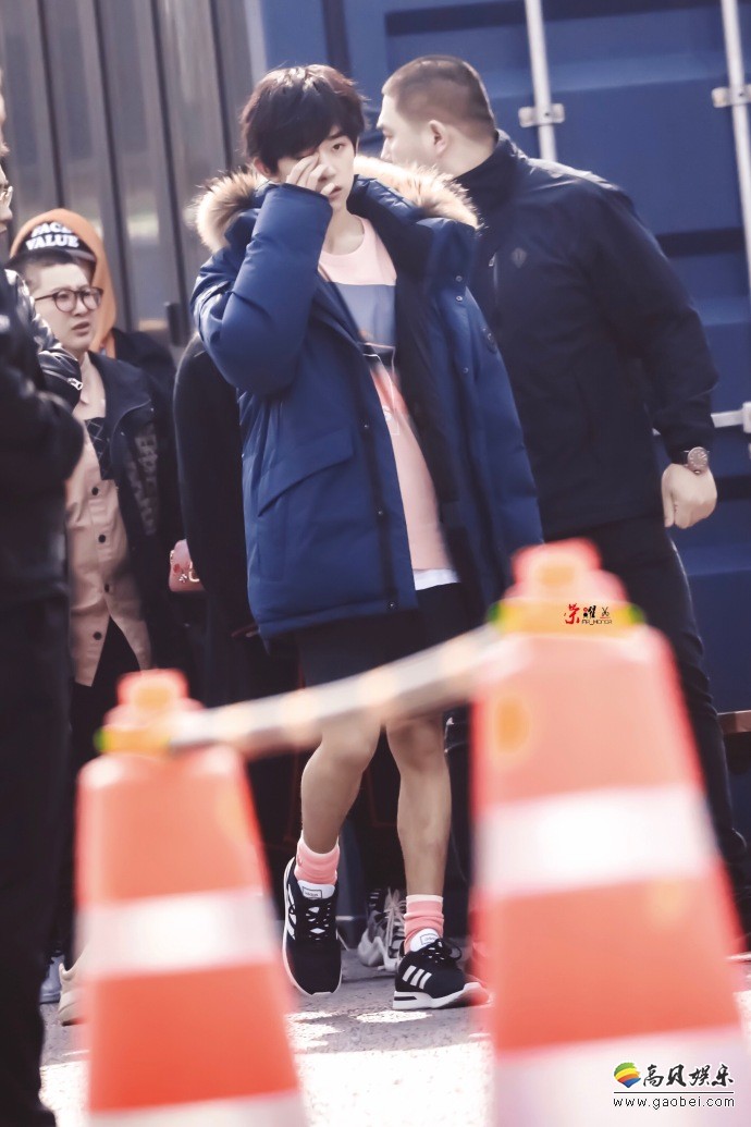 粉丝应援站曝光易烊千玺广告路透图:上身裹着羽绒服,下半身只穿短裤