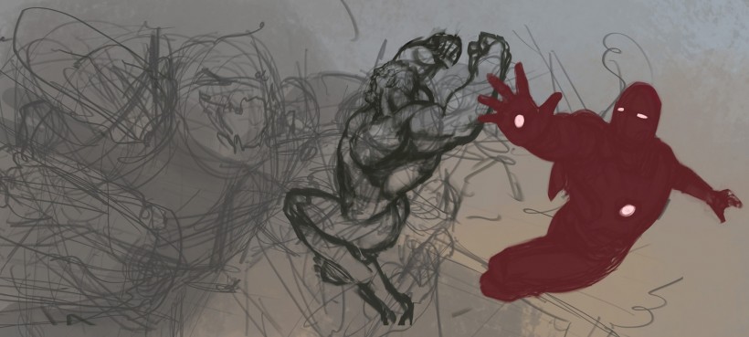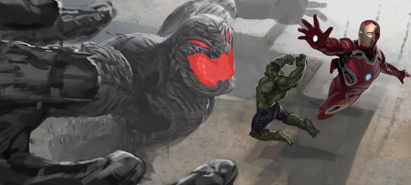 设计师展示了这张概念图从草图到最后成品的整个过程,图中和超进化奥创对打的是绿巨人和钢铁侠。你觉得这个没能出现在《复联2》电影之中的大场面,和现行版的终极大战相比,哪个更酷呢?