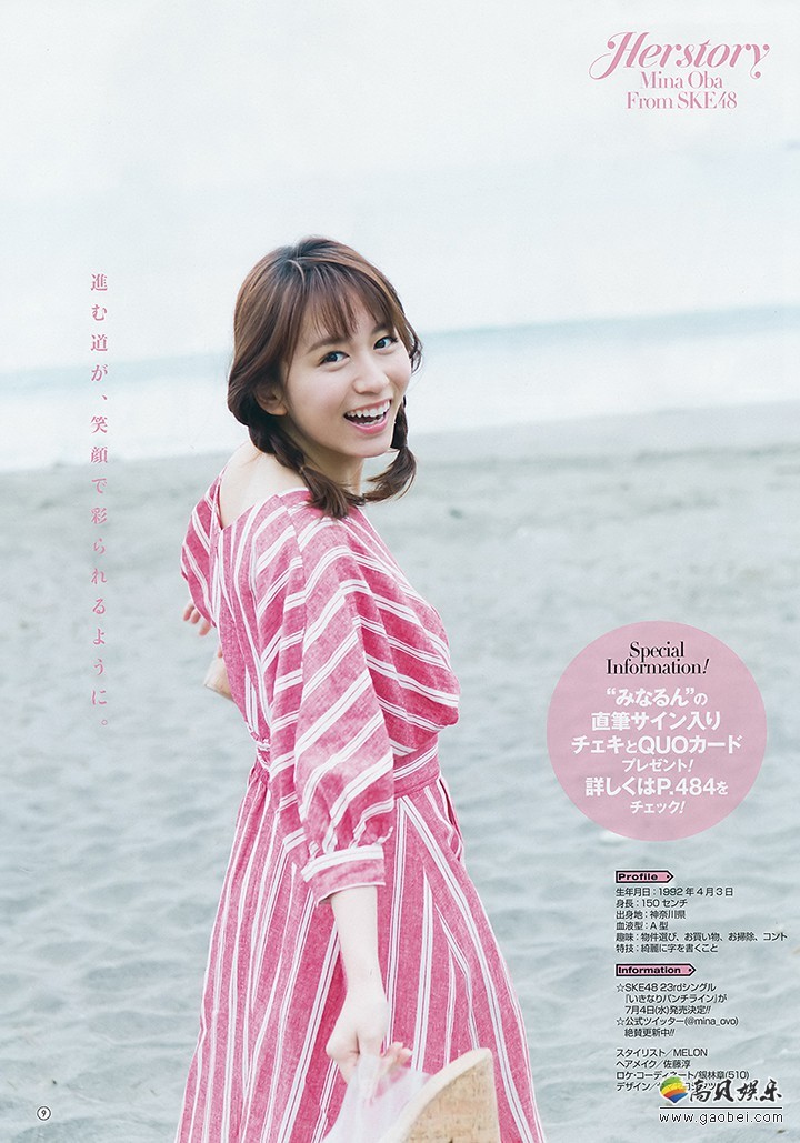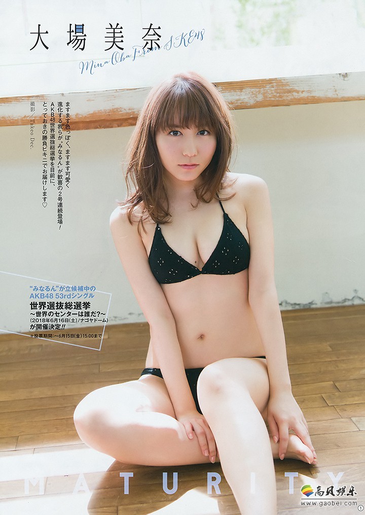 恭喜大场美奈打入选拔!她2009年以AKB48第9期生身份加入,2013年开始兼任SKE48,2014年完全移籍。一直以来她作为偶像的成绩不高不低,由第2届总选开始参战,最高只有22位,今年她藉着SKE48的主场之利,从去年26位一举杀上第8位,努力了9年终于以26岁之龄达成初入选拔的梦想!今年她得到53998票中,相信有部分是因为她近年稳定地拍摄性感写真而收获的。送上她近月为了争取选票为周刊拍摄的写真合集。