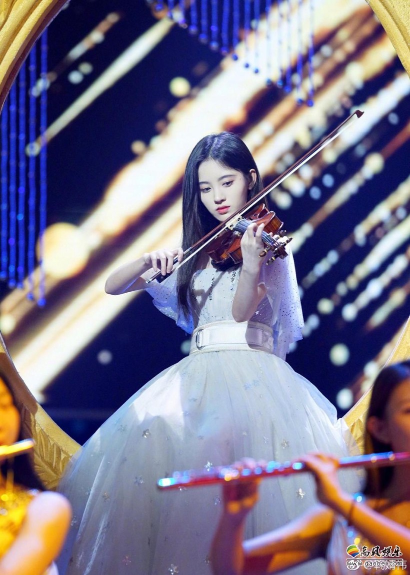 鞠婧祎晒出自拍和在舞台拉小提琴照片:白色纱裙,拉起小提琴仙气十足