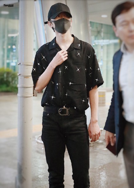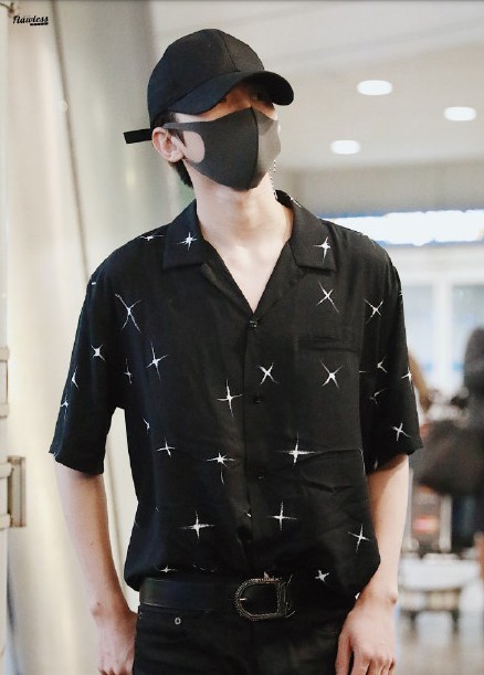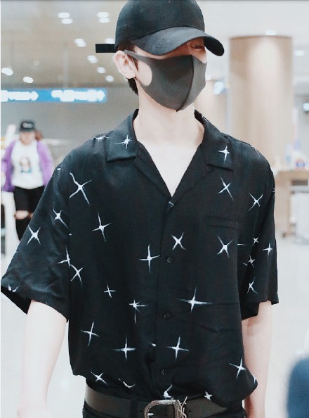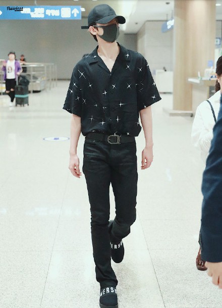 蔡徐坤现身韩国仁川机...
