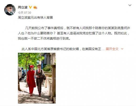 7月4日早上,周立波在微博发布长文,诉“涉毒持枪案”事件原委,称该案“元凶有惊人背景”,疑为富二代,而自己惨遭陷害。