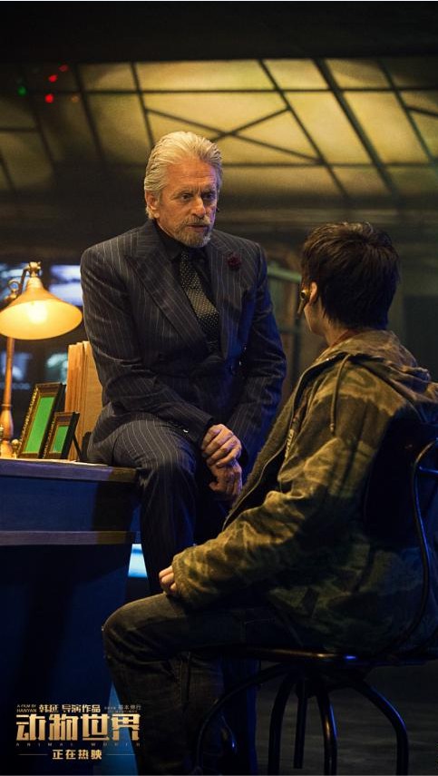 迈克尔·道格拉斯在电影《动物世界》中饰演“命运号”游轮的掌舵者安德森,是郑开司上船的直接推动者,神秘深沉。特辑开头,伴随手杖敲击大理石地面的清晰声音,道格拉斯气定神闲的出场,宣布命运号启航。短短几个镜头就将这位一流电影演员炉火纯青的演技具象表现出来。韩延导演透露,早在架构电影世界观时,就希望游轮组织的首领是西方面孔。而他在邀请道格拉斯出演前,特意写了一万多字的人物小传细致解读角色。如此深入地交流,为导演和演员后续拍摄奠定了良好的基础。