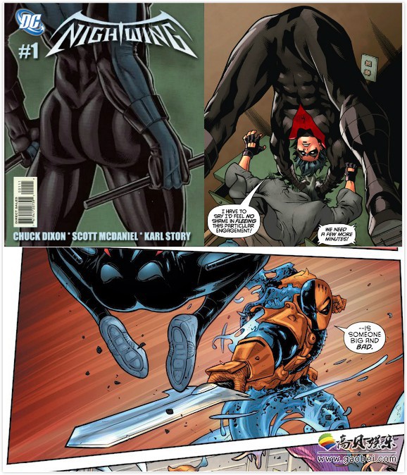 “夜翼”官方漫画,DC经常将视角对准迪克的臀部