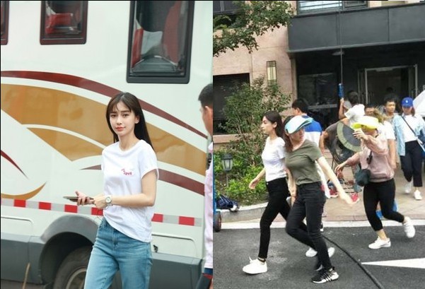 Angelababy被目击某住宅小区拍戏:在戏里随性打扮造型,被赞像学生妹