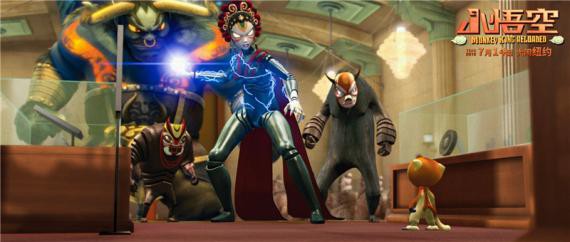 除此之外,学习了谦卑勇士之道的小悟空,从一个连跳跃都不会的金丝猴,最终化身为手持金箍棒,拥有七十二变的齐天大圣,这其中也蕴含着主角们在挫折中不断成长和追逐梦想的成长主题。且小悟空的分身技能大战牛魔王的场面令人热血沸腾,其中“蜘蛛猴”的跳跃、在帝国大厦上怒吼的“大金刚”等中西合璧的新时代流行元素, 使人目不暇接惊喜不断,势必在今夏暑期再刮起一阵“西游风”。