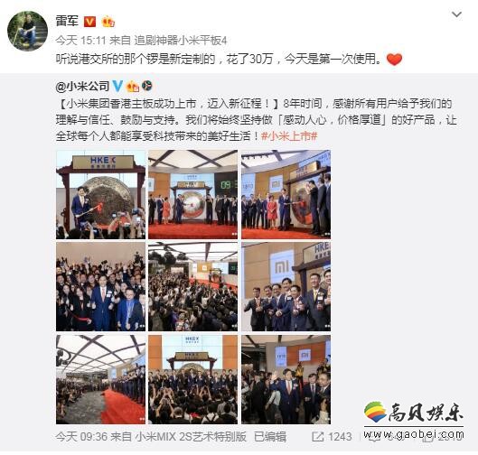 7月9日上午9点28分,雷军在港交所一声锣响,宣告小米正式上市。