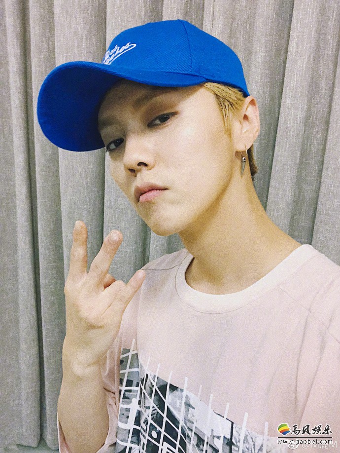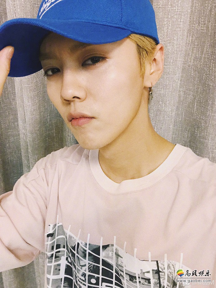 鹿晗微博晒出自拍:头戴蓝色帽子,表情酷炫有型,帅气手势,潮范十足