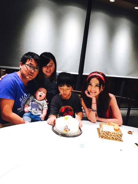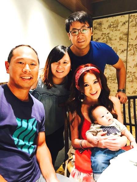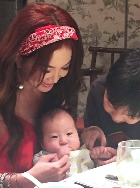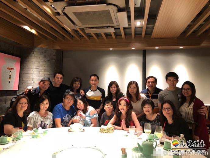 温碧霞和家人聚餐。