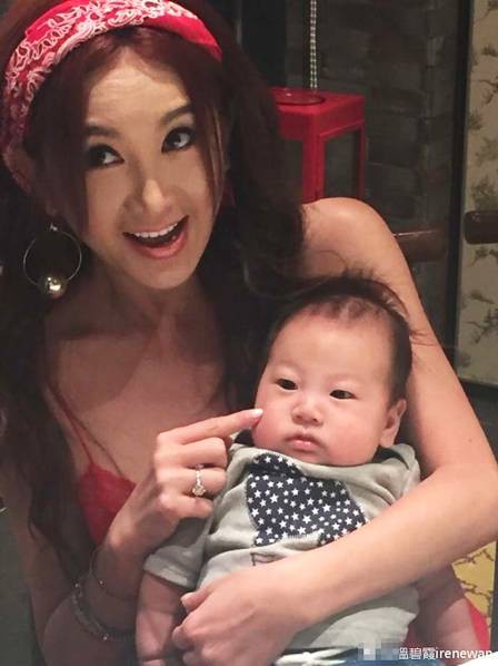 温碧霞与养子亲密合影。