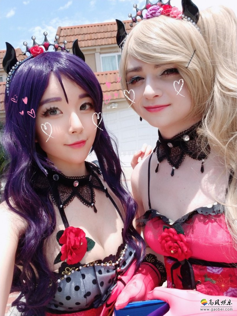 这次Sneaky穿的还是之前那一身小恶魔的COS服,和女票比起来除了胸前飞机场之外,一点都不输啊。