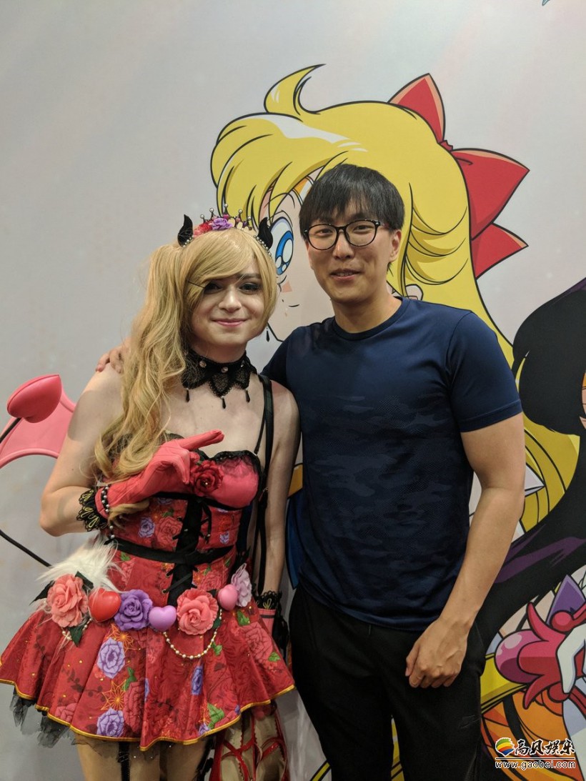 刚结束了洲际赛的TL战队选手“大师兄”Doublelift也跑去了漫展,和Sneaky的合影略显羞涩。北美的玩家还调侃这是“北美LCS最强ADC和北美次级联赛最强ADC”合影。
