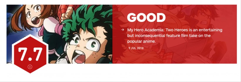 《我的英雄学院》剧场版动画将于8月3日正式上映,这款超级英雄题材的作品在国外也是很受注目,在那边有不少粉丝对本作非常喜爱。现在IGN上公开了《我的英雄学院》剧场版动画的评分,目前的分值为7.7分,在动画电影中也算是不错的,希望在剧场版上映之后还会有更高的评价。