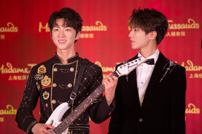 工作室晒出照片:王源蜡像正式揭幕!他与蜡像合影卖萌,很是可爱