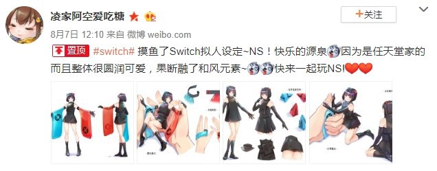 国内玩家@凌家阿空爱吃糖 近日设计了一款拟人化的Switch设定图,为“思薇琪”妹妹的装扮融入了和风元素,长腿短裙的设定也十分惊艳。