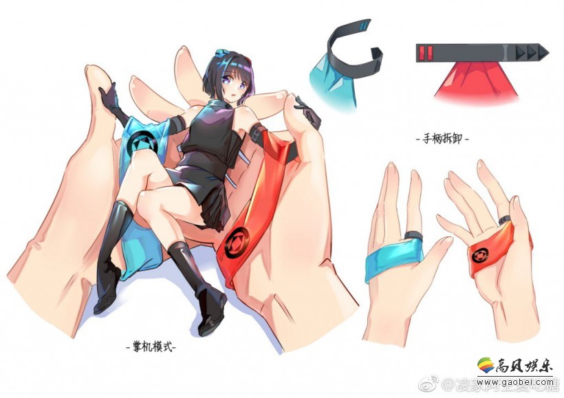 在她的设计下,Joycon手柄变成的袖子,掌机模式下就这么把“思薇琪”托在双手中央(羞耻),绑住袖子摇动双手(游戏键位)。而在主机下,“思薇琪”会端坐在地上,一脸冷静模样。