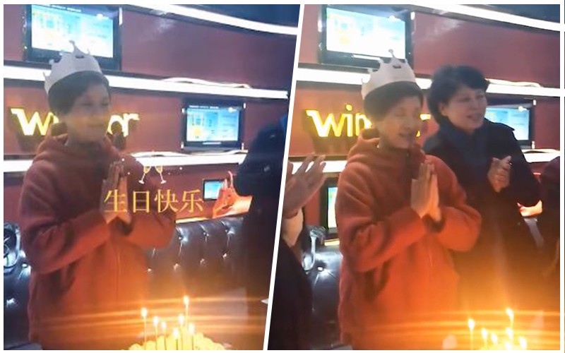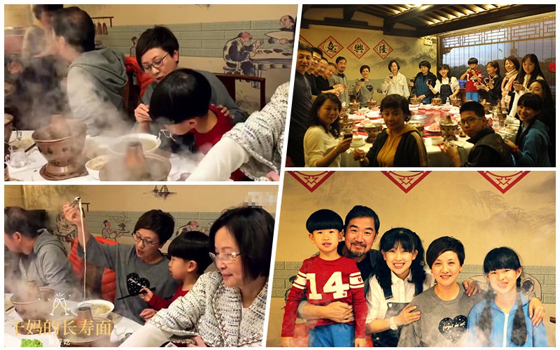 在席间邓婕抱着一个小男孩亲自喂长寿面,吃完饭后一大家人更是一起去KTV唱歌。在包间里,邓婕戴上了生日帽开心的对着镜头比心,真是到老了还拥有一颗少女心。