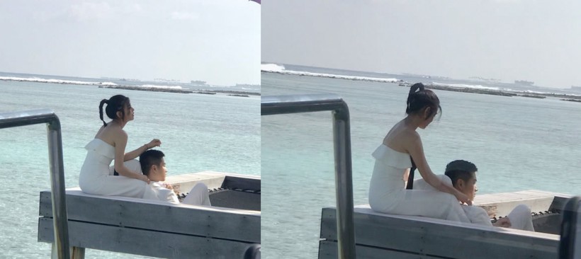 网友马尔代夫偶遇陈晓和陈妍希夫妇:二人身穿白色礼服拍摄婚纱照