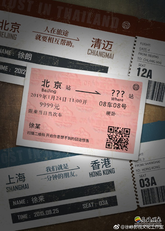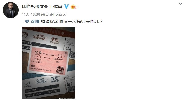 微博@徐峥影视文化工作室 官宣了徐峥执导的“囧系列”电影新作消息。虽然没有透露电影的片名或演员、故事情节,但从宣传图中的火车票来看,这次的故事将从北京出发,而且会发生在火车上。