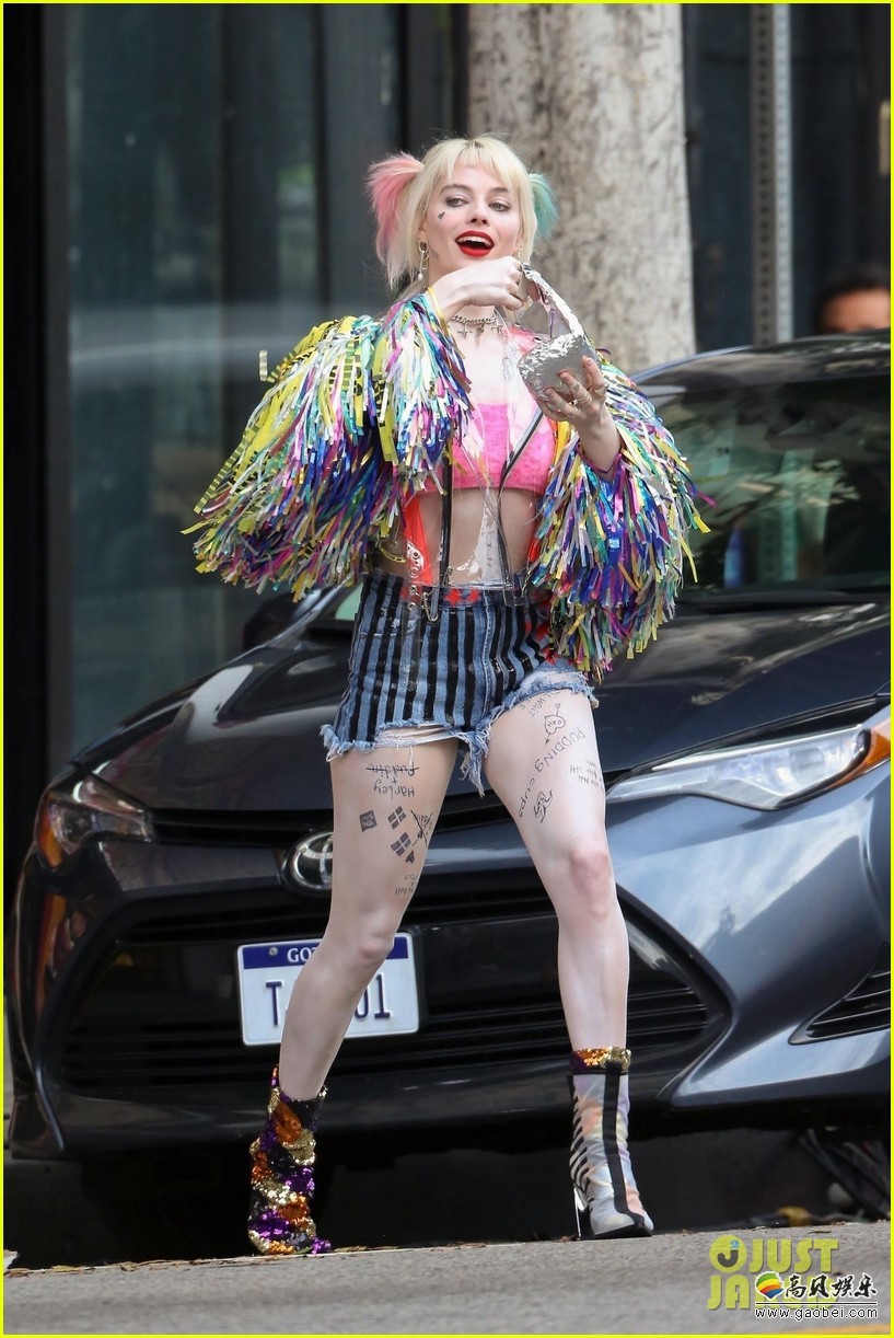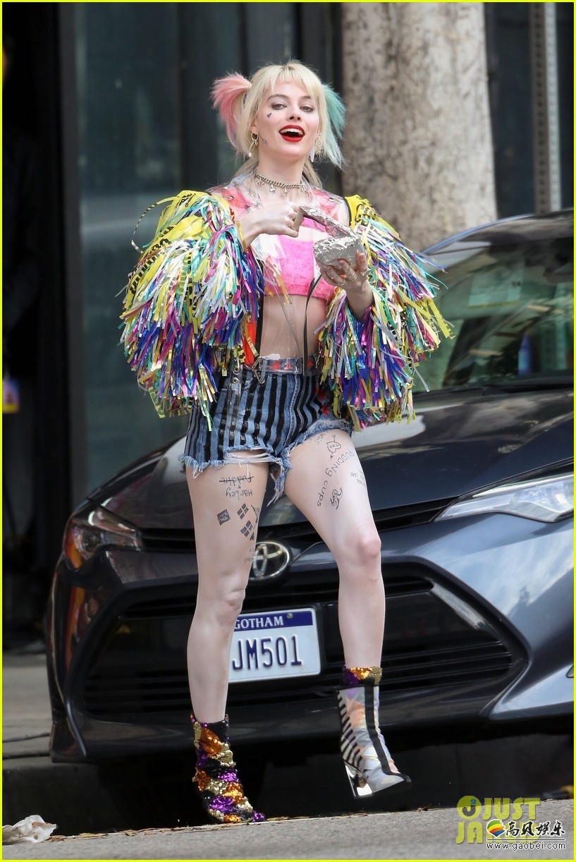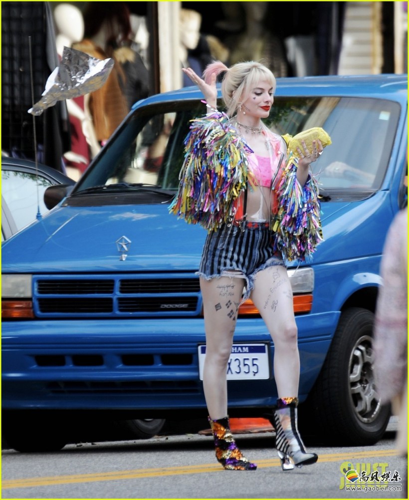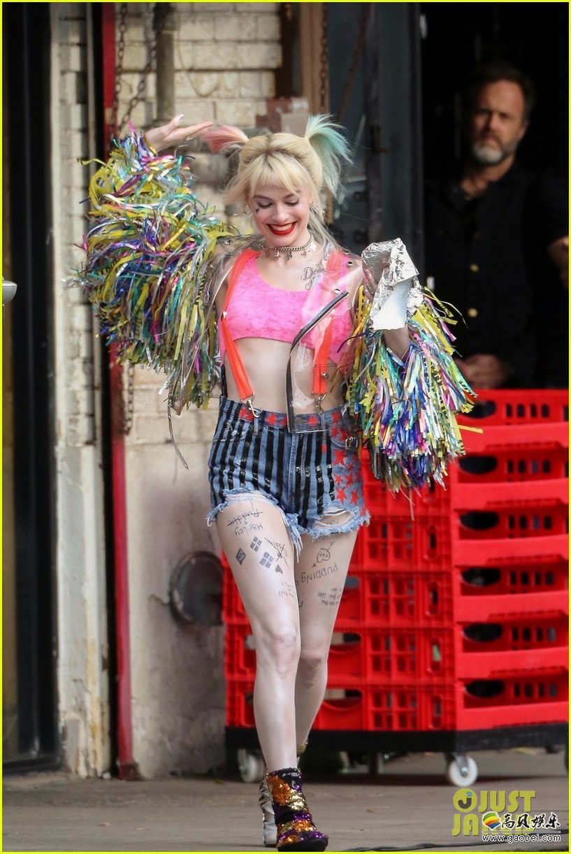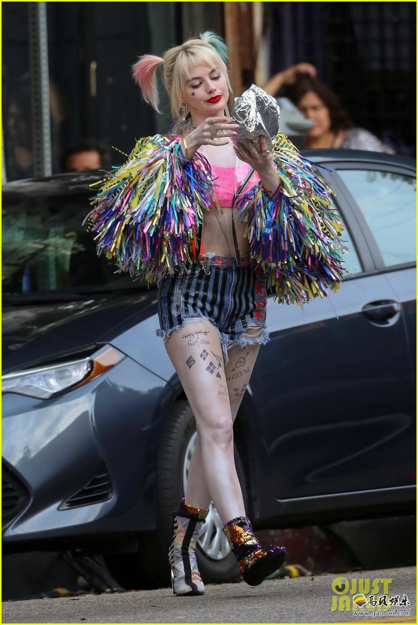 拍摄中的《猛禽小队》又曝出了新的片场照,主角依旧是小丑女哈莉奎茵,这次的片场照在拍摄外景部分,打扮的像圣诞树一样五彩斑斓的小丑女现身街头。