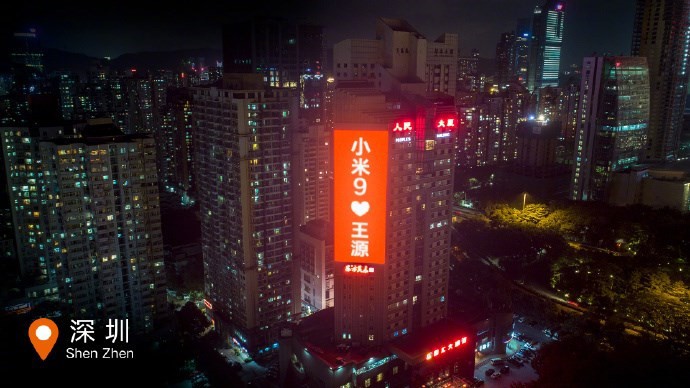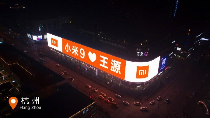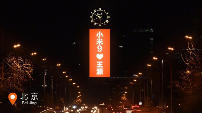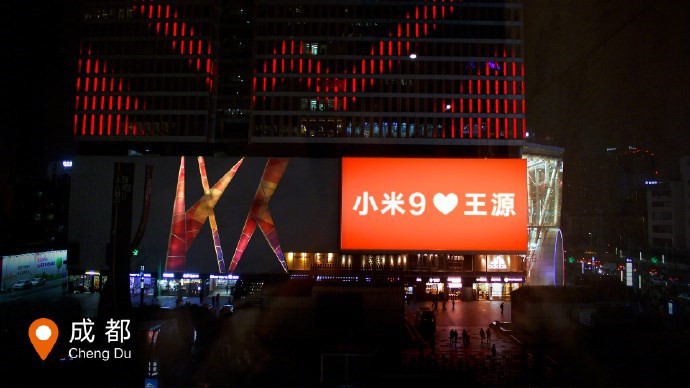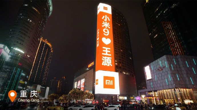 小米新旗舰小米9手机将在2月20日北京发布,小米还宣布TFBOYS-王源正式成为小米手机品牌代言人。恰逢情人节,小米手机今天在中国9大城市地标的大屏幕上展示了小米9,同时情人节比心王源。