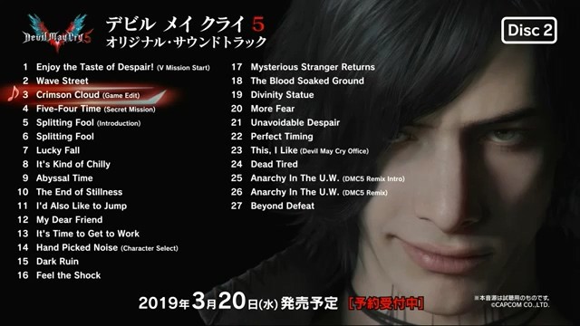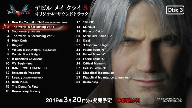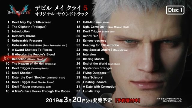 《鬼泣5》游戏将于3月8日推出,音乐大碟2019年3月20日发售,e-capcom预售中,税后价5616日元。