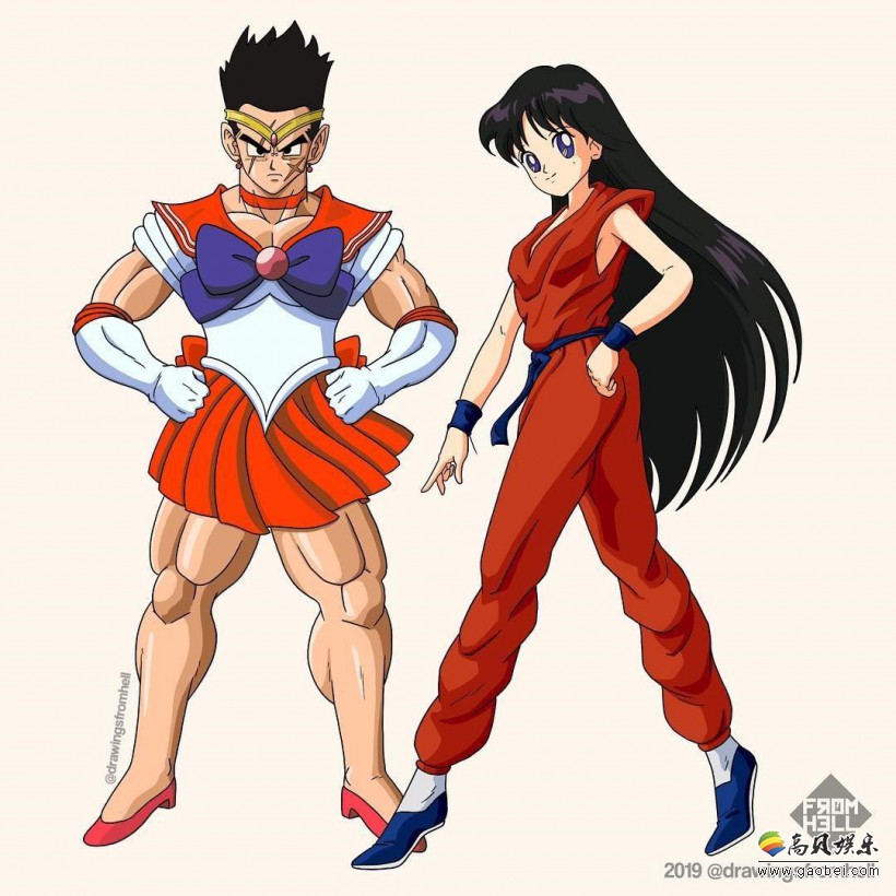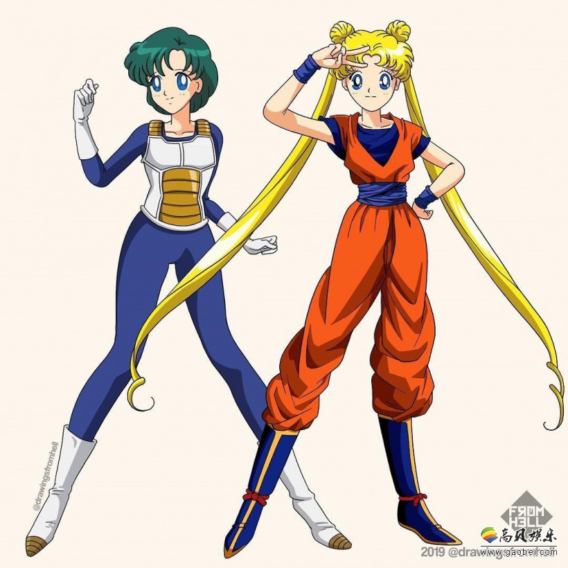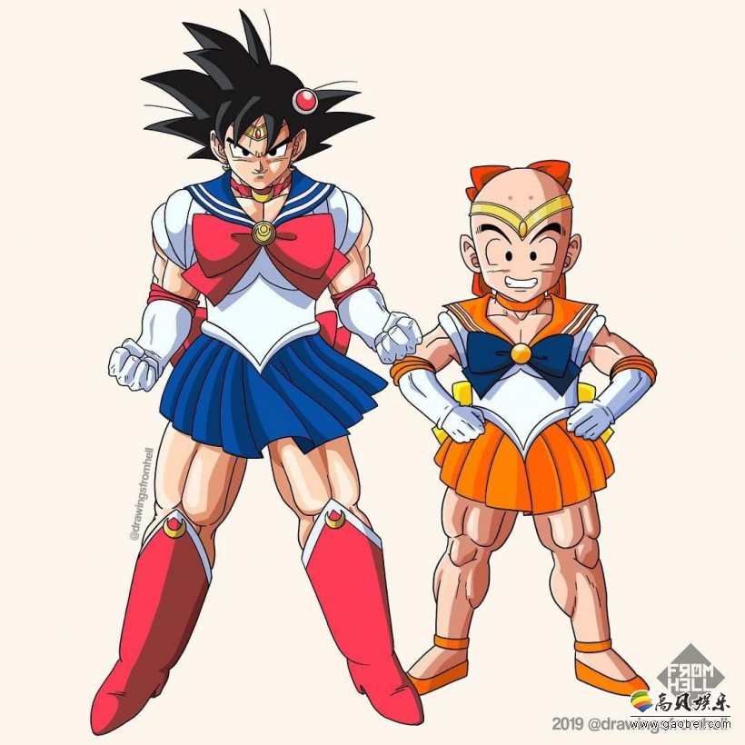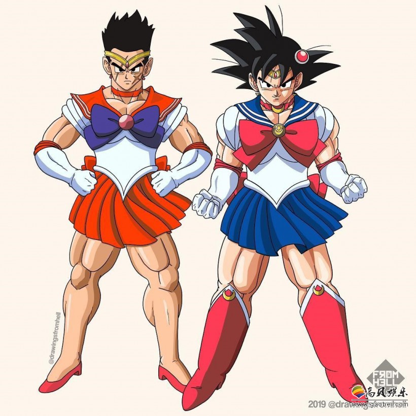 《七龙珠》,《美少女战士》两部风靡全世界的作品,相比大家并不陌生。国外有插画家“Drawingsfromhell”脑洞大开,将这两部作品的主要角色服装互换掉,一起来看看吧。