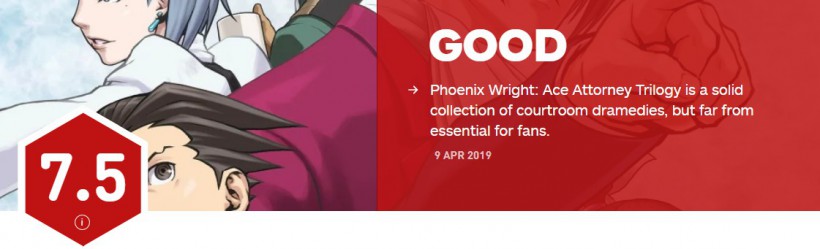 《逆转裁判123:成步堂精选集》Steam版将在4月10日正式发售,IGN为其打出了7.5的评分。