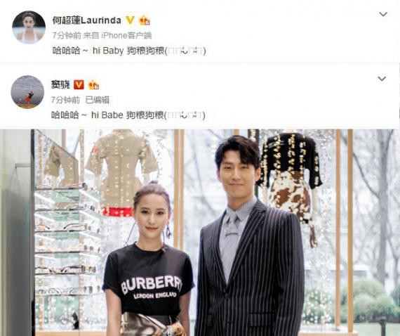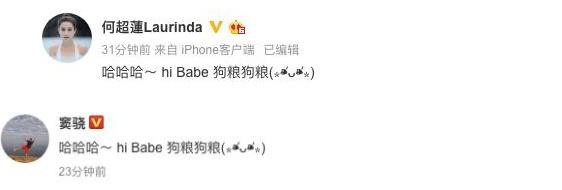 随后窦骁与何超莲一同发文承认恋情:“哈哈哈~ hi Baby 狗粮狗粮”。